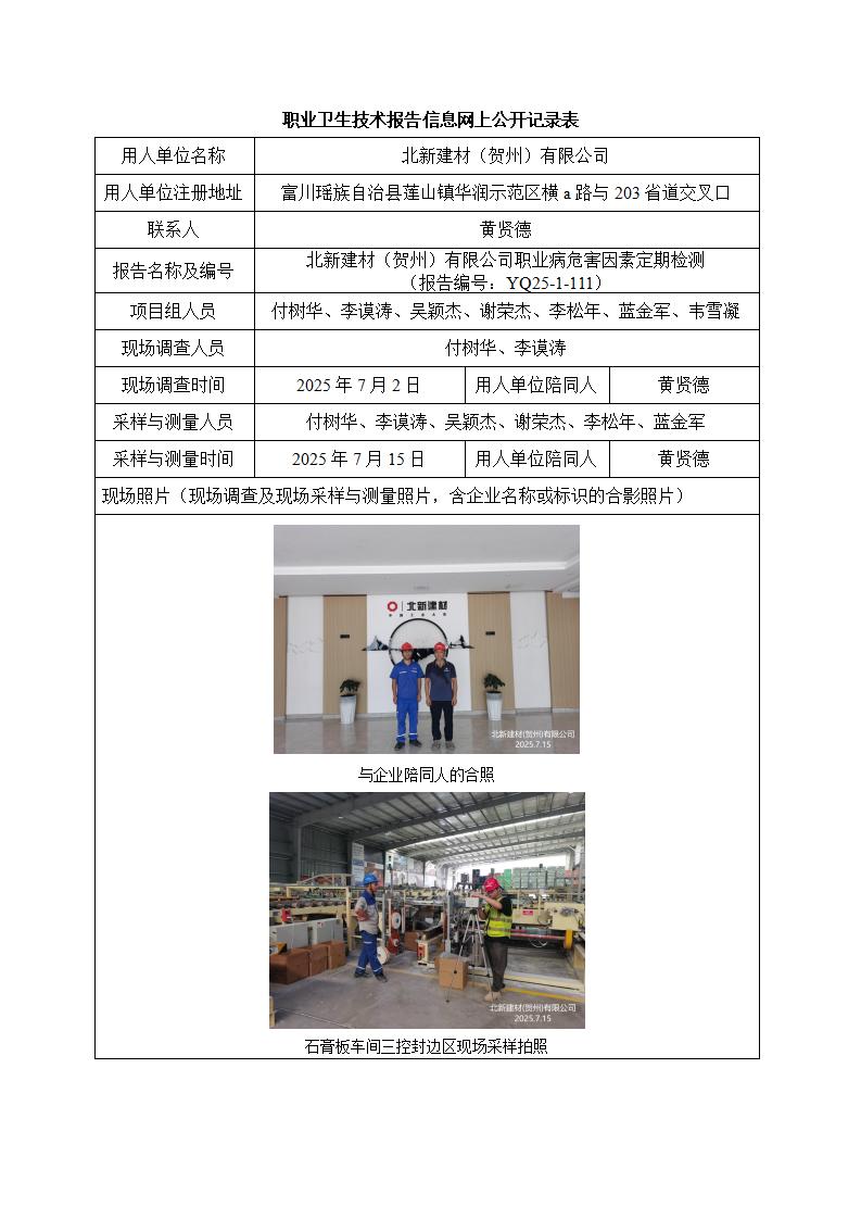 北新建材(賀州)有限公司職業(yè)病危害因素定期檢測