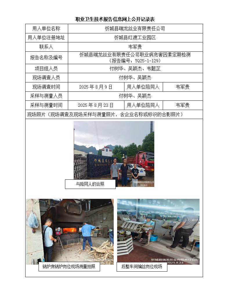 忻城縣瑞龍絲業(yè)有限責(zé)任公司職業(yè)病危害因素定期檢測(cè)